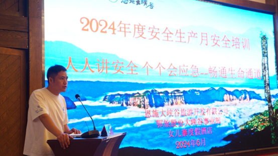 恩施大峡谷景区邀请了恩施市应急管理局王家玉老师为景区员工进行了安全生产与紧急救援知识培训。本次培训公司全体管理人员及关键岗位工作人员参加,通过专业的培训,提高了员工的安全意识和应急处理能力,保障能够更好地应对各类安全风险和突发事件。