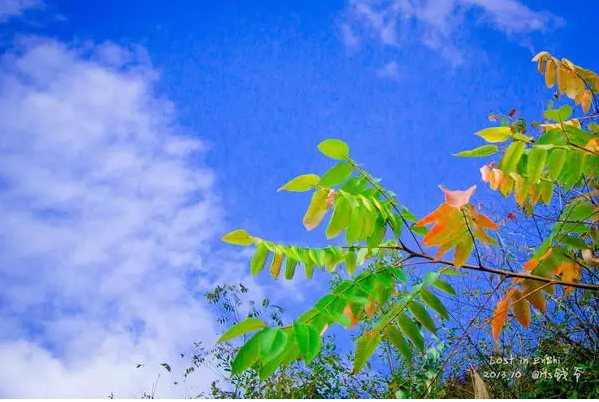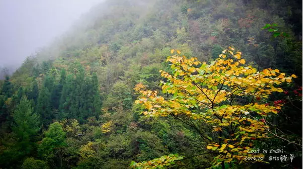 走完栈道,就开始在山里上上下下,从一座山爬到另一座。路中有回音谷,众人站在那大声呼唤同伴,你好吗?你……好……吗……玩的不亦乐乎。山间一片深绿色,配上零星的红色和黄色,别有一番风味。