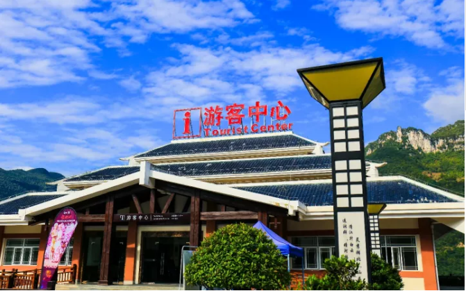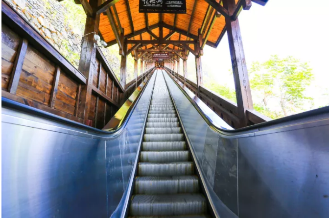 沿着山间栈道直下,山下的终点站-游客返程中心近在眼前,在连接终点站的斜坡上,一排琉璃瓦房如一条弯曲的巨龙从山间连接到停车场,成为一道亮丽的人造风光。琉璃瓦房里,是一段接一段运行的扶手电梯,对于体力不支的游客无异于雪中送炭。而母亲却认为:最后的不到2公里路程却是压死骆驼的最后一根稻草,让你心甘情愿花费30元乘电梯下去,本着节约出发,母亲坚持走到了停车场。