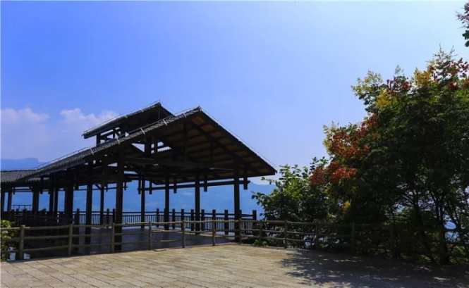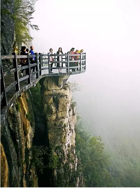 绝壁长廊实际上是一条悬崖栈道,它修建在300米高的天然垂直绝壁山腰上,该栈道七道弯八道拐,寓意为“路七弯八拐,心始终如一”。相对于天门山的悬崖栈道、云阳龙缸的玻璃栈道,并不显得“险、绝”。从这里,只见云雾飘渺,众山绵延,田园、村庄、峡谷、河流、公路若隐若现,恍如仙境。