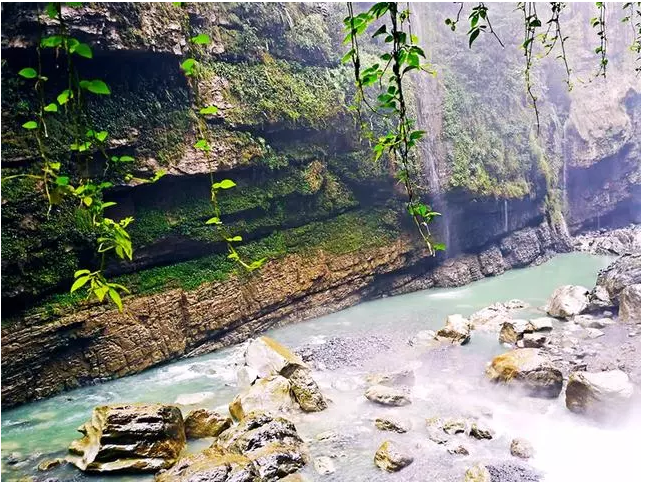 据资料介绍:云龙地缝是108公里恩施大峡谷的一部分,上通天水暗河,下联莽莽清江。上古时期,地缝还是条暗河,地表上多条溪流泻入暗河,形成地下瀑布。亿万年来,流水不断溶化地表石灰岩,造成暗河顶部坍塌,变成了今天的模样。目前可供游客游览的地缝全长约3.8公里,断面呈深“U”型,最深处超过100米,最窄处不到10米。