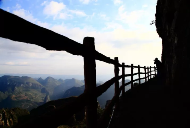 在七星寨,有一段称之为“天路”的登山栈道,就是登天阁到登天门的81级台阶,登完这些台阶,离天就近了。这如同我们人生的路程,坚持走下去就是胜利。