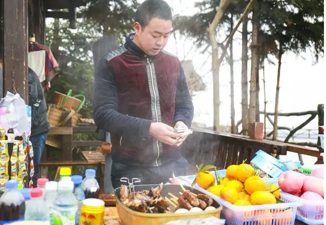 在岩湾休息区,我看见了一个小女孩背着背蔸向游客兜售柑橘、黄瓜等,小女孩大约10岁,收到钱后,就交给我旁边卖柑橘的妇女—她的妈妈,再从妈妈的背兜里拿出柑橘放入自己的背兜,又背上四处兜售。这是我在很多旅游区看到的一个现象,曾经在四洞峡,也是这样的小女孩,一边看书,一边兜售矿泉水。这让我想到“穷人的孩子早当家”这句话,作为游客,从这些孩子手里买些需要甚至不需要的物品,在我看来也是一种美德。