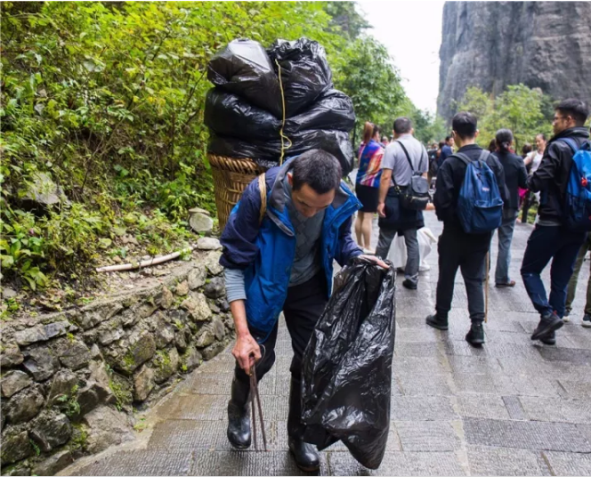 岩湾休息区,可以说是七星寨景区的一个中间站。从这里又将开始登山,滑竿、背篼(用于背小孩)众多成为这里的一道风景,许多体力较弱者,选择了坐滑竿,而许多带小孩的游客则将小孩交给背背兜的妇女背着走。抬滑竿者大多为40岁-60岁的土家、苗族汉子,背背兜的大多是妇女。通过与他们交谈,我了解到:所有抬滑竿、背背兜的乡民都来自山里面的村落,旅游开发后,一部分乡民成为旅游公司的工人,持有公司的工作证,都参加了保险,并且明码标价,一个山头80元,由此减除了游客的后顾之忧。在武陵山区,乡民的吃苦耐劳是出名的,即使年逾花甲,也是劳动不断,挑上百斤走山路如履平地。在景区,我每当碰到这些靠力气吃饭的抬夫、挑夫们,在对他们保持深深敬意的同时,主动为他们让出路来。