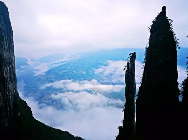 在我看来,七星寨游览,除了近距离体验大自然鬼斧神工造就的奇峰异石之外,便是观云海,看峡谷。雨后天晴,便是观云海的最佳时间,飘渺的云彩给山川大地披上神秘的面纱,描绘出一幅水墨山水风光图画;晴空万里之时,便是看峡谷的最佳时机,从山上俯视,大峡谷如同大地上的一条裂缝、一道伤口,让人触目惊心。