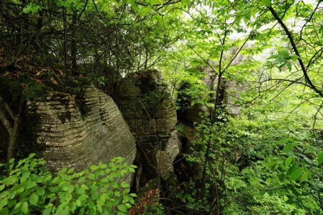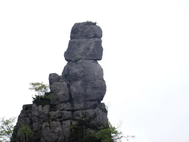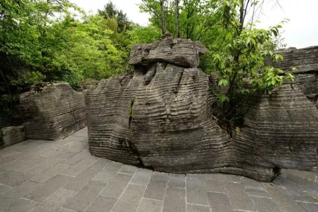 从游客中心坐摆渡车到索道站坐缆车上山,然后就是上山下山上山下山……,最后坐电动扶梯下山,耗时五个小时。前两座山的景色平平,除了层状的地质结构有些特色外,山势总体比较平缓没什么奇峰异石。