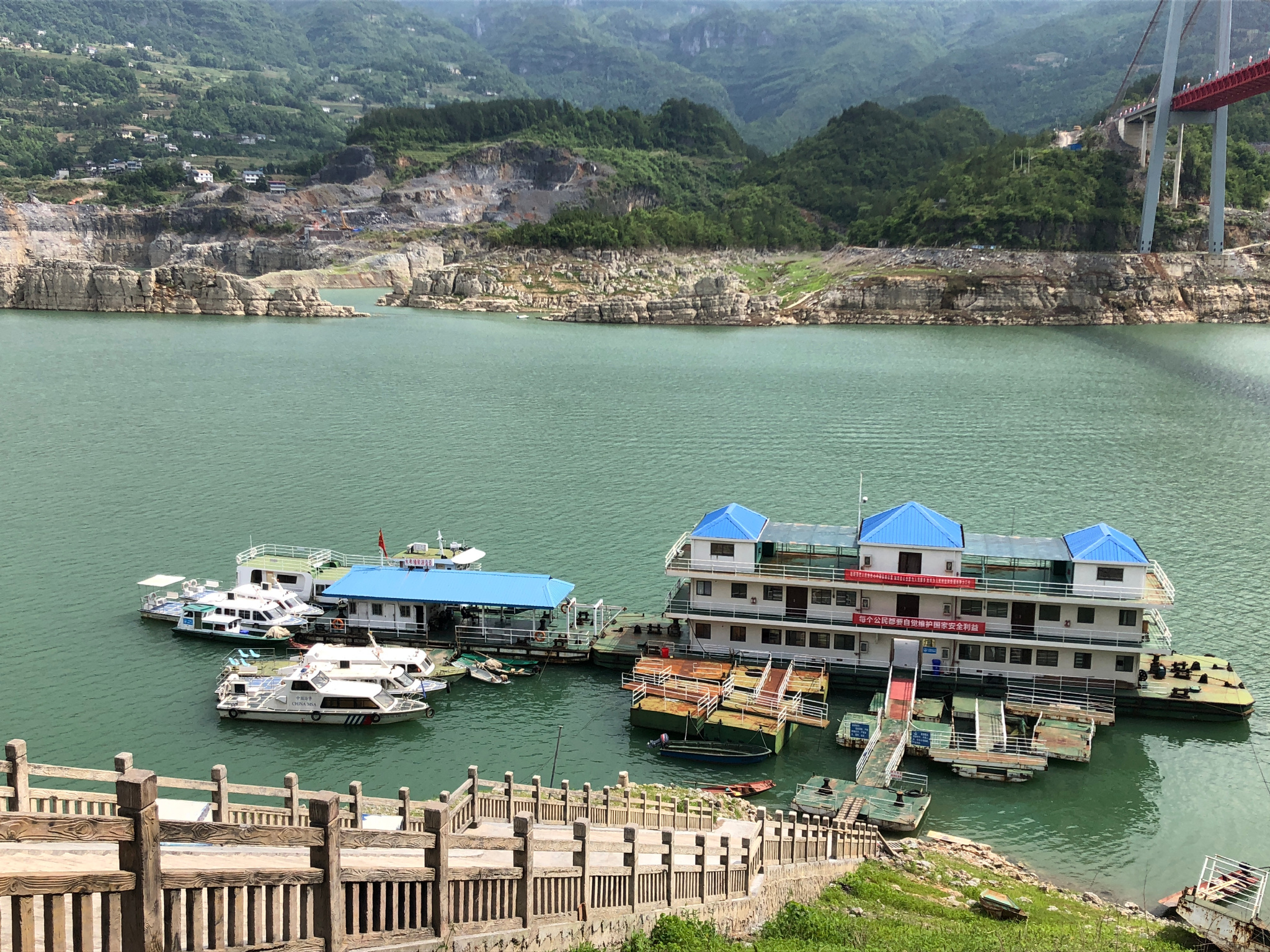 船行到水布垭码头,也就是大清江风景区的尾部了,这里随手一拍画面感都很好。微风轻拂、碧波微澜,阳光洒射在江面,小船荡漾其间,美好地时光仿佛都定格了下来。