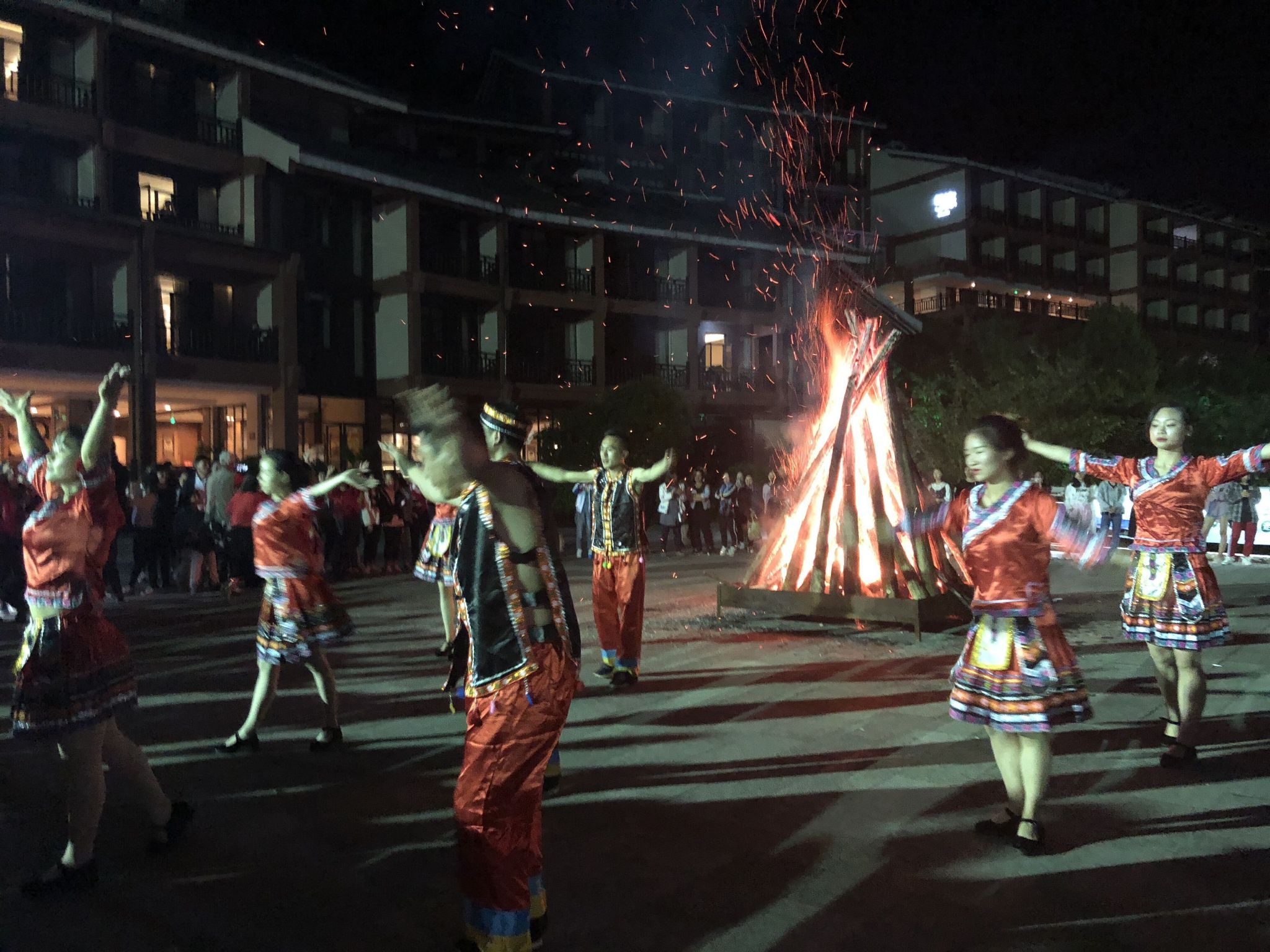 我住在女儿寨的5栋,听说这里是视野最好的房间。微风拂动窗纱,凭栏远眺,远处是大城市里未曾见过的山色,近听都是鸟儿的喳喳细语。躺在软软的床榻之上,所有旅途的疲惫消失得无影无踪,只期待着夜晚的篝火晚会~