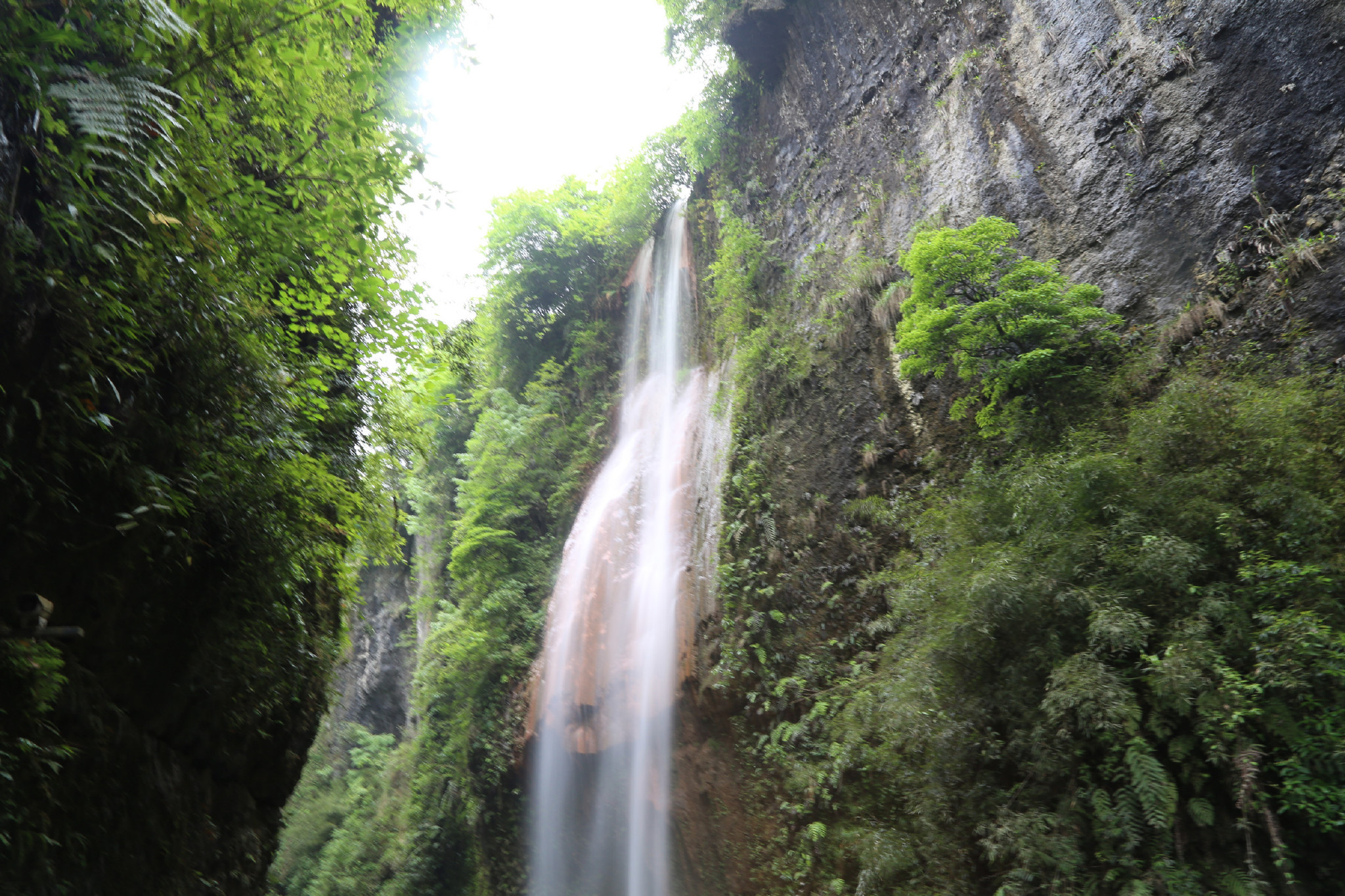 沿着步行栈道向前,地缝两岸有数条飞瀑流泉,飞流直下的水瀑看着都令人神清气爽。一路沿着垂壁上的栈梯下到地缝中,五月里也能感觉到一股凉爽的寒气袭来。云龙地缝只是恩施大峡谷景区的一个景点,朝着山上继续前进,还有更多的秀丽景色,也就是“七星寨景区”。